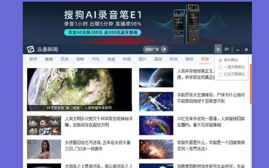 一般电脑上会弹出搜狗头条新闻的弹窗是因为自己电脑中安装了关于搜狗的产品,例如搜狗浏览器、搜狗输入法,搜狗头条新闻相当于一个捆绑推广自家的广告插件。