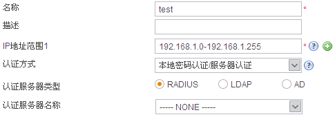 5. 创建网段192.168.1.0/24对应的用户认证策略test。