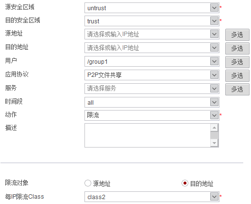 9. 配置每IP限流策略2,引用class2,限制用户P2P下载最大带宽为2M。
