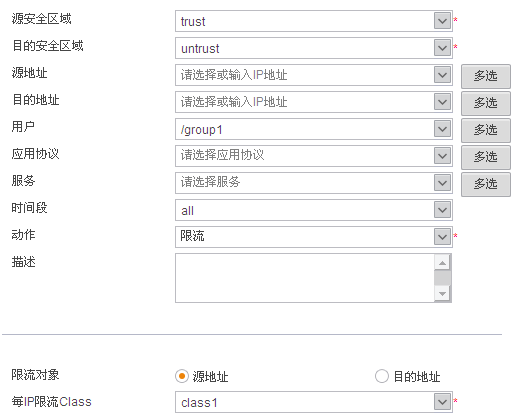 8. 配置每IP限流策略1,引用class1,限制用户访问或者上载最大带宽为1M。