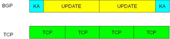 BGP首先需要把自己需要发送的数据告诉TCP,然后TCP根据数据的长度进行分段,分段大小由TCP协商的MSS值的大小决定,每个TCP分段对应着一个发出去的IP包。所以MSS参数的设置对于BGP数据传输的性能起着关键作用,如果设置过大可能会造成中间某台设备的IP层分片,BGP协议报文的传输其实是一个端到端的传输过程。 www.jb51.net