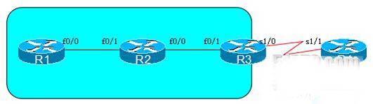 实验拓扑如下,路由器R1、R2、R3为内部路由器,而R4为外部路由,实验目的为AS内部路由器发放默认路由,那么如何实现呢,请看下面步骤。