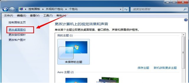 3、在个性化的窗口中,在左侧中点击更改桌面图标,如下图所示: