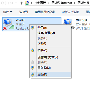 4、如果还是有黄色感叹dao号,还是打开“网络连接”,找到无线网络连接,右键选择属性。