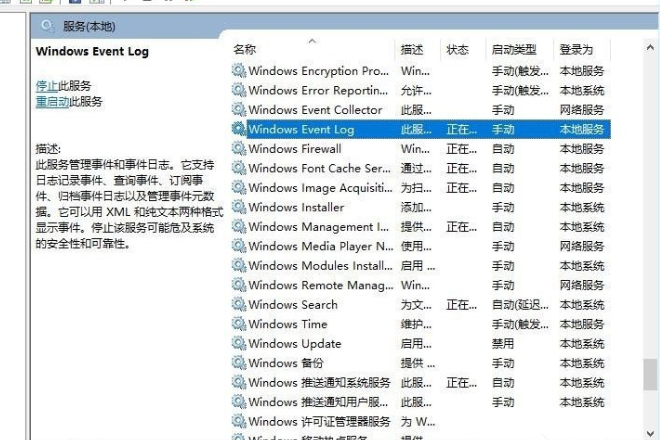 2、找到Windows Event Log服务;