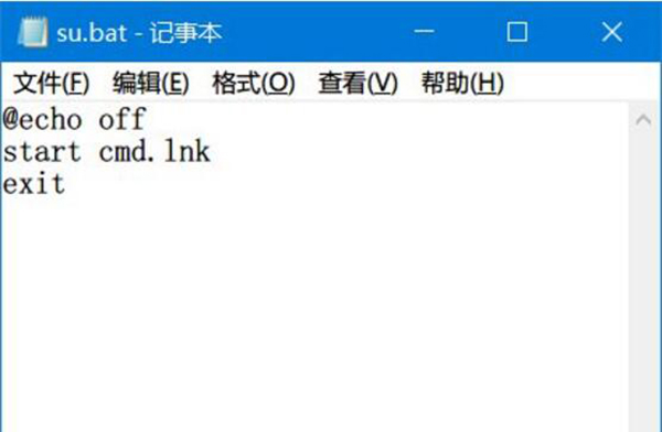 第五步:右键点击“su.bat”文件,选取”编辑“选项,然后在记事本中输入以下内容(不含引号):-
