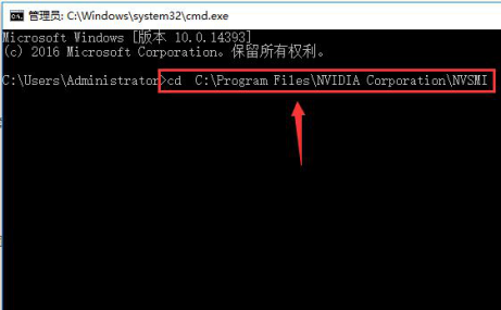2、输入命令 cd C:\Program Files\NVIDIA Corporation\NVSMI。