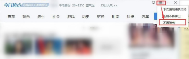 1、最简单的方法就是在弹出的今天热点窗口,点击右上角三横,选择不在弹出。