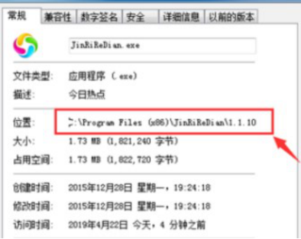 3、查看它的位置,按照步骤,找到文件位置所在卸载今日热点即可。