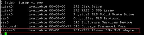 hdisk2 是本地集成的 SAS 盘,我们可以查出本地集成 SAS 通道的带宽为 3Gb: