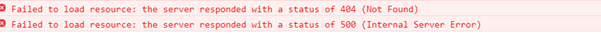 在页面上显示出数据异常,下面就直接出现了404(数据路径找不到)和500(服务器异常)这些错误。