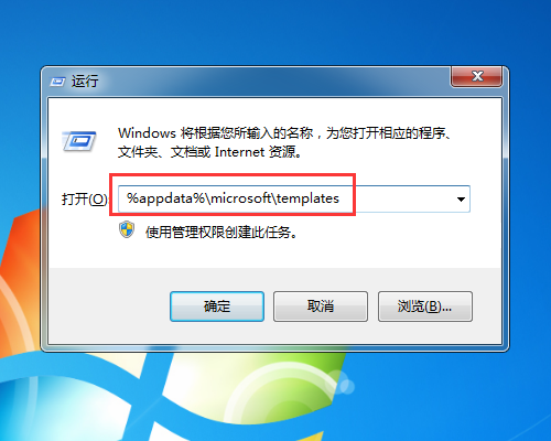 4、然后,在对话框中输入“%appdata%\microsoft\templates”并点击确认。