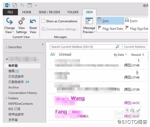 OUTLOOK 2013 如何为收到邮件的标题做颜色标记