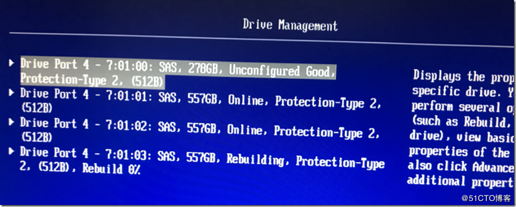 重新启动进入RAID卡,300GB的硬盘还是配成了热备磁盘,又是熟悉的配方、熟悉的味道。但是,槽位3的硬盘是Unconfigured Good,这块硬盘没有同步,如图8所示。