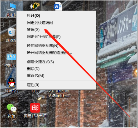 首先, 在桌面上右键点击此电脑,右键菜单中找到“管理”点击打开。