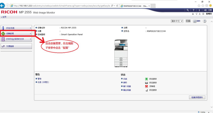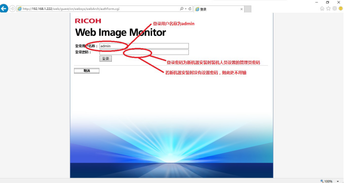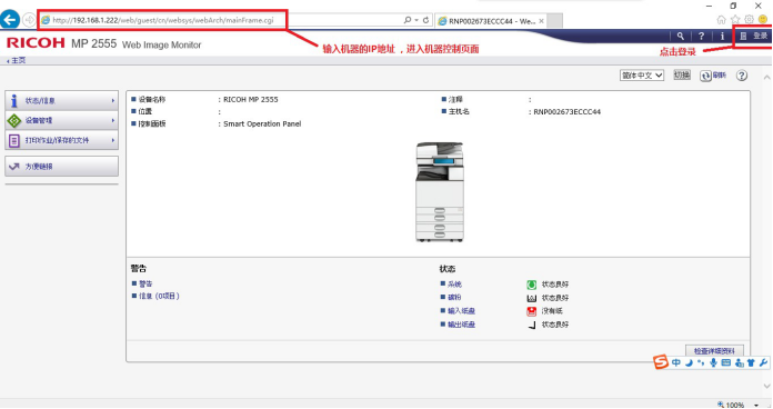 在浏览器中输入机器的 IP 地址后回车进入机器 WEB 页面