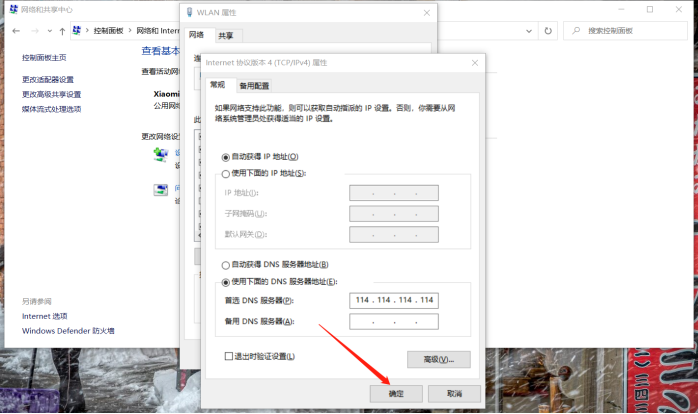 4. 点击最下方的dns,可以将dns改为114.114.114.114或者202.106.0.20