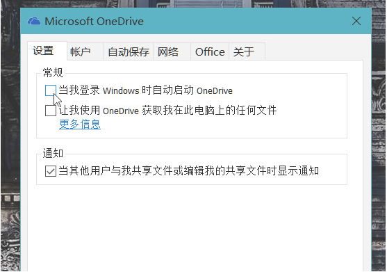如果你只是需要暂时停用OneDrive,以后有需要的时候还想继续使用的话,那么就没有必要彻底卸载,可以通过OneDrive设置中停用即可,具体如下:
