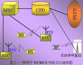 该实例方案结构如图3所示。其中CPD(Calling Profile Database)是整个IDS的核心,它记录着系统中合法用户的正常通信行为特征。MSC负责将用户每次的通信行为实时传送给CPD并由它集中处理。当CPD认为有非法入侵时就发出一条警告信息给无线寻呼系统,由该系统将这条警告信息发送给被冒充用户所携带的寻呼机。CPD同时还接入PSTN。用户可以通过电话直接与CPD中心取得联系,以确认自己的手机是否被盗用;同时用户还可以随时修改自己在CPD的通信行为描述表。