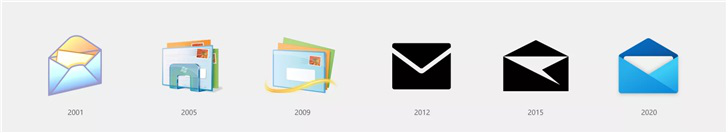 新的彩色图标旨在让你熟悉和看起来相似,同时“尊重” Windows操作系统的遗产,以尝试对其进行改革。根据Koehn的说法,微软设计团队“为计算器图标探索了无数的设计方向”,从单色版本到系统中现已存在的Fluent流畅设计版本。有趣的是,我们见证了微软在尝试发展像计算器图标这样简单事物的实验,以及该公司在过去近20年中对Windows Mail图标的演变。