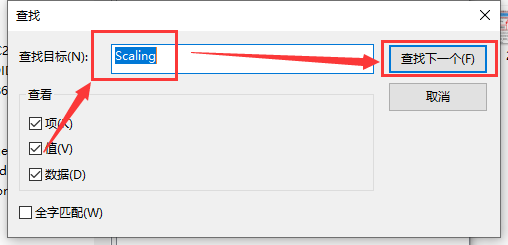 4.输入Scaling,在右框内即可看到scaling,右键scaling选择【修改】,将数值改为3即可,原值为4
