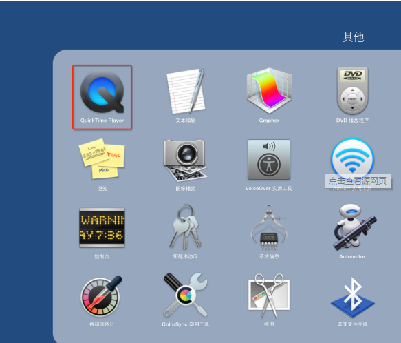 2.接着进入应用中心打开系统自带软件【QuickTime Player】。