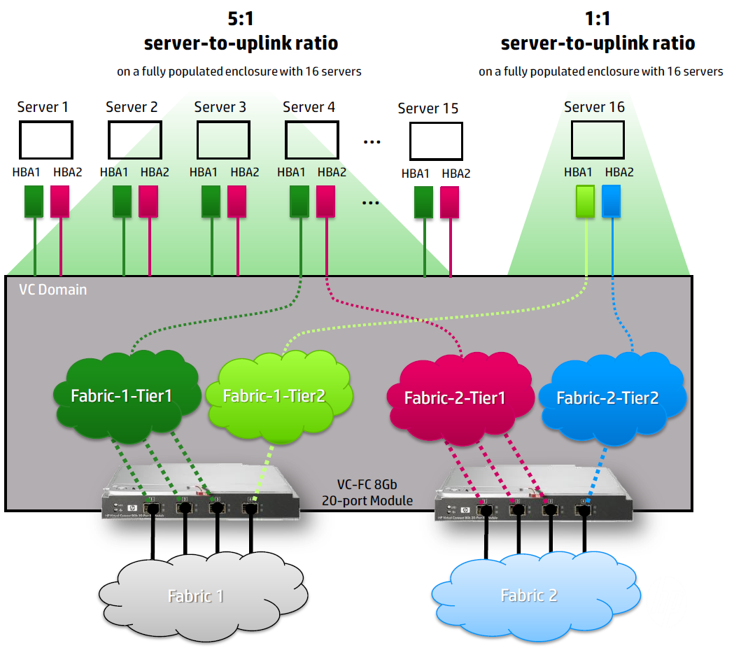 服务器和存储设备在点对点的环境里都是N_PORT. 通过一条上行一条下行两条通道进行数据存储与读取。