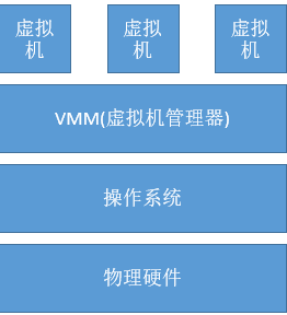 寄居虚拟化如图所示,最底层是物理硬件,物理硬件之上是主机的操作系统,操作系统之上是VMM(virtual machine monitor,虚拟机管理层),再往上就是客户的虚拟户了。