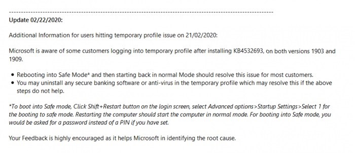微软承认Windows 10 补丁 KB4532693会删除个人配置文件,并给出恢复方案