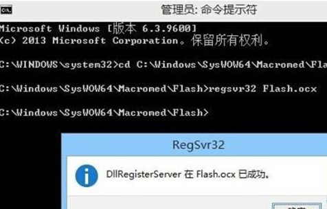 6、再输入regsvr32 Flash.ocx后,按下回车键;