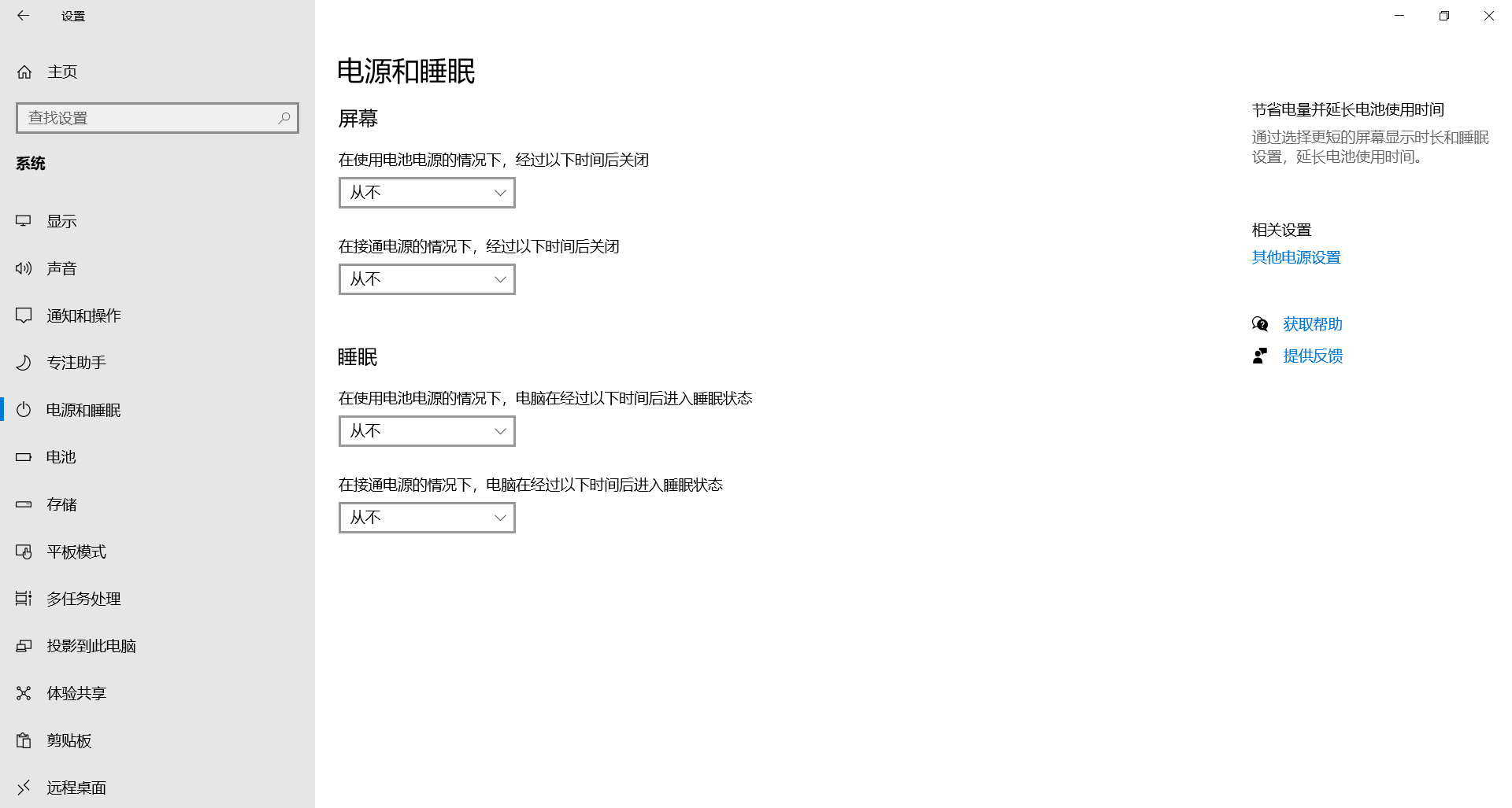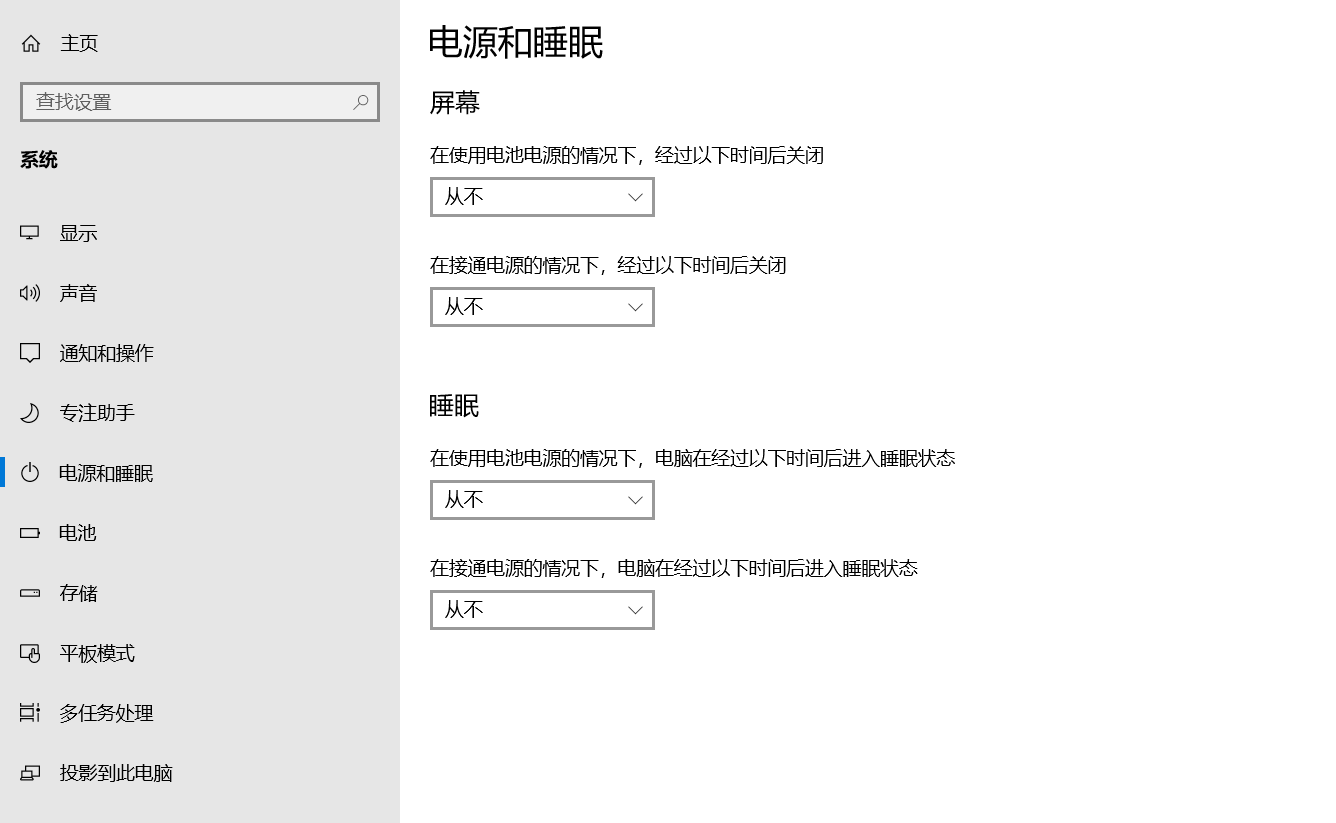 另外这里还可以调整显示屏和电脑的休眠时间,因为我是经常用电脑,所以这里没有设置休眠时间,大家可以根据自己的需求而已!