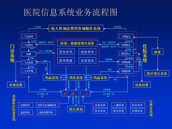 进行整理、处理、汇总、统计、分析等。此部分包括:门诊医生工作站、住院医生工作站、护士工作站、临床检验系统、输血管理系统、医学影像系统、手术室麻醉系统等。