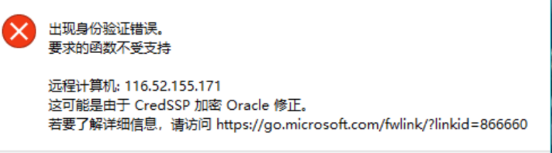 出现身份验证错误,要求的函数不受支持,这可能是由于CredSSP加密 Oracle修正