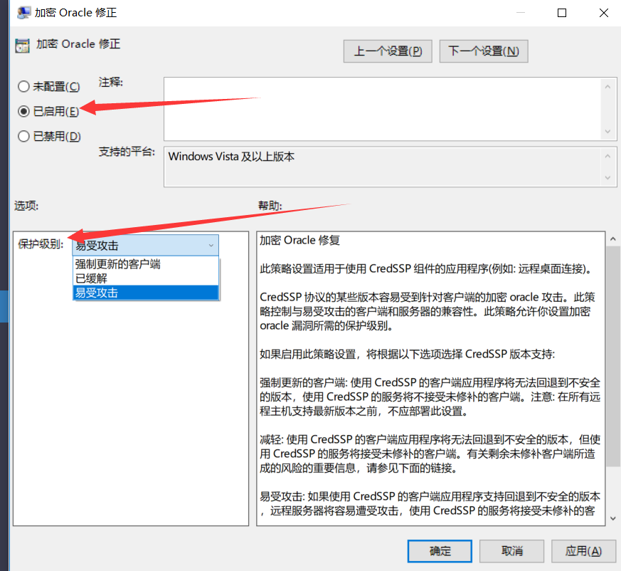 依次展开“计算机配置”->“管理模板”->“系统”->“凭据分配”设置名称: 加密 Oracle 修正