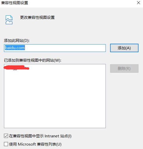5、弹出的框就可以加入想要设置兼容模式的网址。