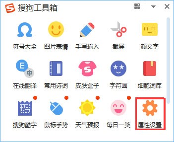 2、切换出输入法,点击“扳手”设置按钮,然后点击【属性设置】;