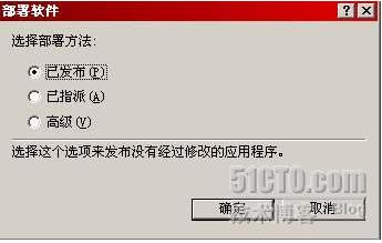 接下来要选择部署方式,可以选择发布或指派。发布和指派的区别在于,发布只能针对用户,而指派则既能针对用户也能针对计算机;而且指派有一定的强制性,但发布则不具有强制性。本文中我们选择的部署方式是发布,下篇博文中将为大家举一个指派的例子。