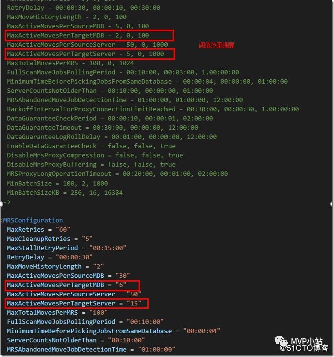 打开文件后,更改 MaxActiveMovesPerTargetMDB 和 MacActiveMovesPerTargetServer 的值。更改这些值之后,请重新启动 Microsoft Exchange 邮箱复制服务,以应用这些值。如果您的组织中拥有多台 Exchange 2010 CAS 服务器,必须在所有服务器上都执行上述步骤。