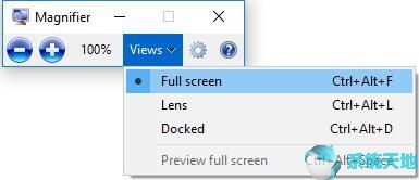 Win10系统上有三种放大镜视图选项,即全屏,镜头和停靠。如果您愿意,可以在这里选择哪一个。