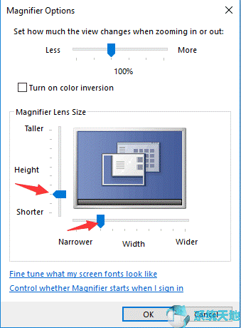 除了上面的设置选项,您还可以在Win10系统上为放大镜选择许多其他选项。