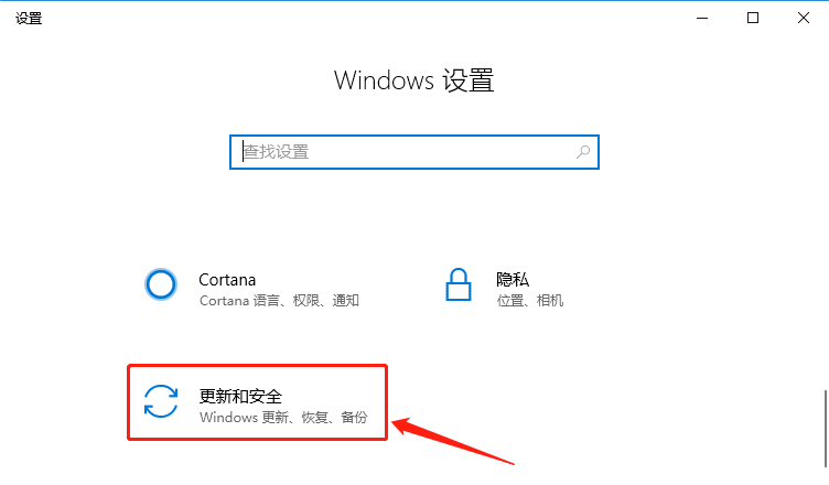 1、打开设置界面,然后输入[更新和安全性]设置。