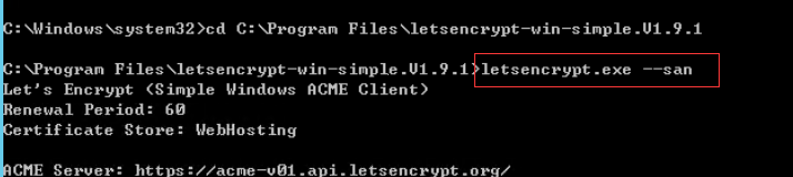 进入解压文件夹,运行 letsencrypt.exe --san 命令