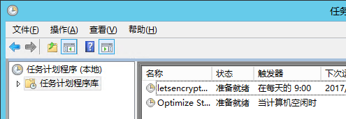 接下来它会在每个站点下创建一个里验证文件,验证通过之后就会生成对应证书添加到IIS中,如果一切正常的情况下会在任务管理中创建一个定时更新任务。