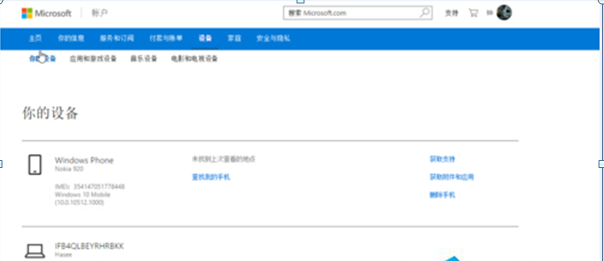 2、登陆网页,访问account.microsoft.com/devices査看你的账户所关联的设备列表(需要登录微软账户);