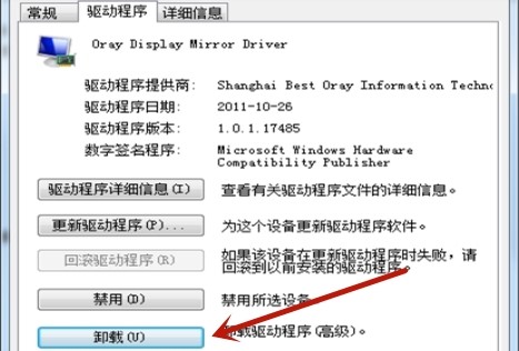 5、打开显示适配器的属性页面后,接着选择驱动程序,在驱动程序下方找到卸载按钮,并点击卸载。