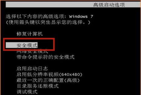 1、首先将电脑开机,在刚出现开机画面的时候连续按下F8键,然后便会显示出高级启动选项的画面,在该画面中找到