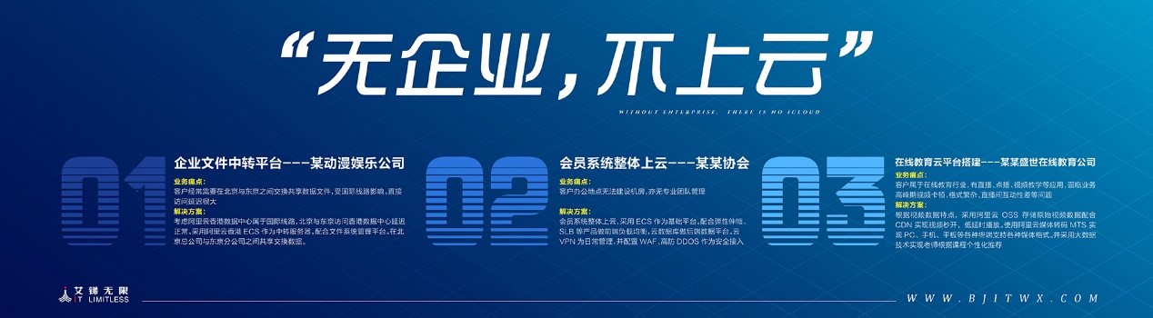 企业上云不仅能为企业节省70%以上的成本,更能为企业提升500%以上的效率,甚至它的有些价值是无法计算的,这些年艾锑无限为上千家企业提供了上云服务,亲身经历了有一些企业上云变革后带来的增长和变化,我记得服务了一家装修行业的领头企业,在2016年这家企业因人员场地和机房成本,让这家公司举步维艰,离破产仅一步之遥,我和这家企业的CEO是好朋友,有一天我去看他,听到他和我分享现在遇到的巨大困境,我问了他几个关键的问题,最后确认了是成本不断提升,业绩却没有提高,效率低下从而导致企业经营困难,后来艾锑无限的云解决方案团队帮助他出了三个解决方案: