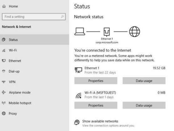 “设置”中的“网络和Internet”状态页面也获得优化:用户将更直观地看到网络连接、数据使用情况、快速查看活动和Internet连接属性等信息。使用Windows 10版本2004之前系统的用户需要点开设置并进行一系列