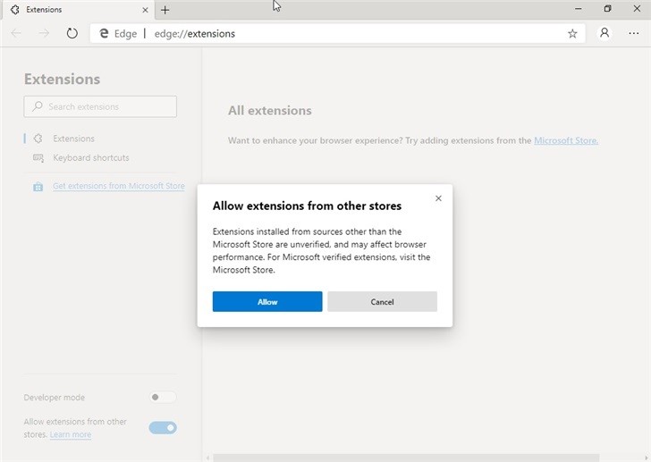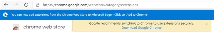 并且警告消息从Microsoft Edge中删除。Google在一份声明中解释了其Chrome网上商店和Edge浏览器之间出了什么问题。