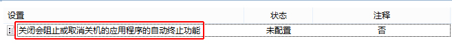 3、鼠标左键双击右侧的“关闭会阻止或取消关机的应用程序的自动终止功能”,如下图所示: